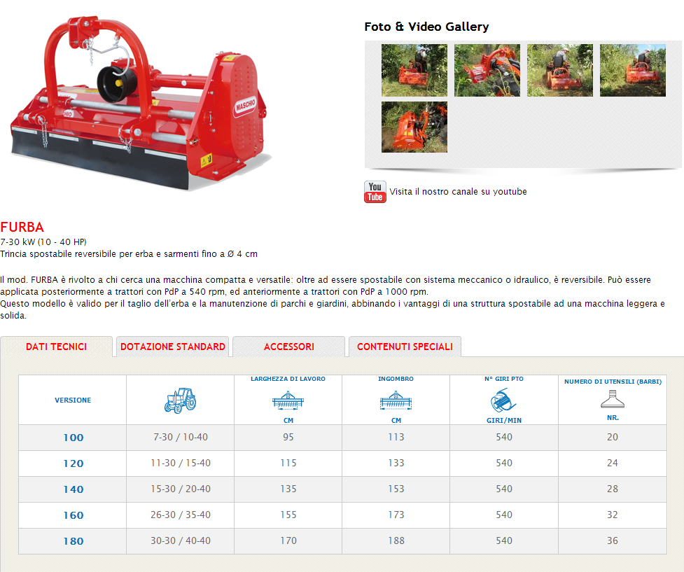 Trincia spostabile reversibile per erba e sarmenti fino a Ø 4 cm. Il mod. FURBA è rivolto a chi cerca una macchina compatta e versatile: oltre ad essere spostabile con sistema meccanico o idraulico, è reversibile. Può essere applicata posteriormente a trattori con PdP a 540 rpm, ed anteriormente a trattori con PdP a 1000 rpm. Questo modello è valido per il taglio dell’erba e la manutenzione di parchi e giardini, abbinando i vantaggi di una struttura spostabile ad una macchina leggera e solida.